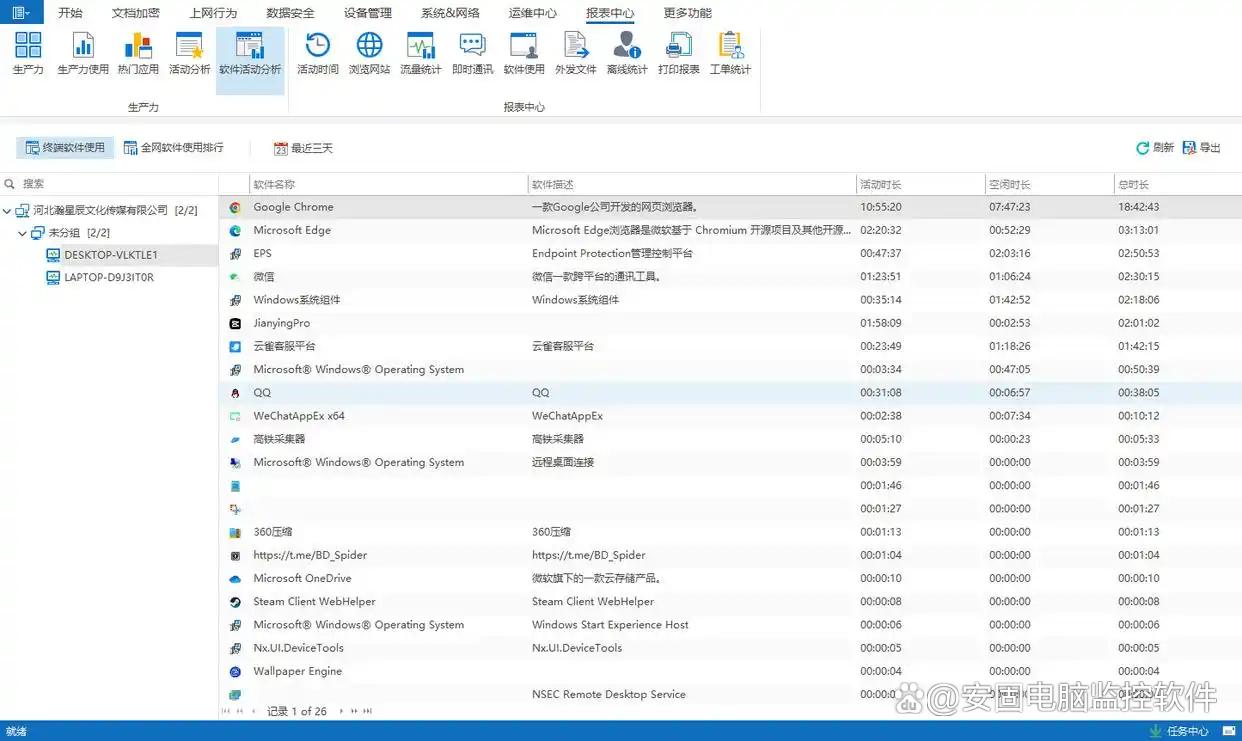 应用程序审计与控制:了解员工使用了哪些应用程序,限制员工运行某些与工作无关的软件或禁止下载新软件;