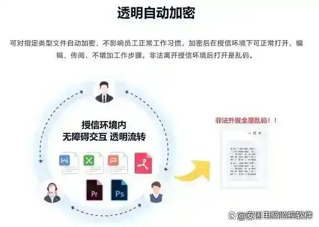 作为国内透明加密领域的领军者,安固软件以“全流程自动加密+精细化场景适配”为核心,尤其适合中大型企业保护图纸、文档、代码等核心数据,7大功能环环相扣: