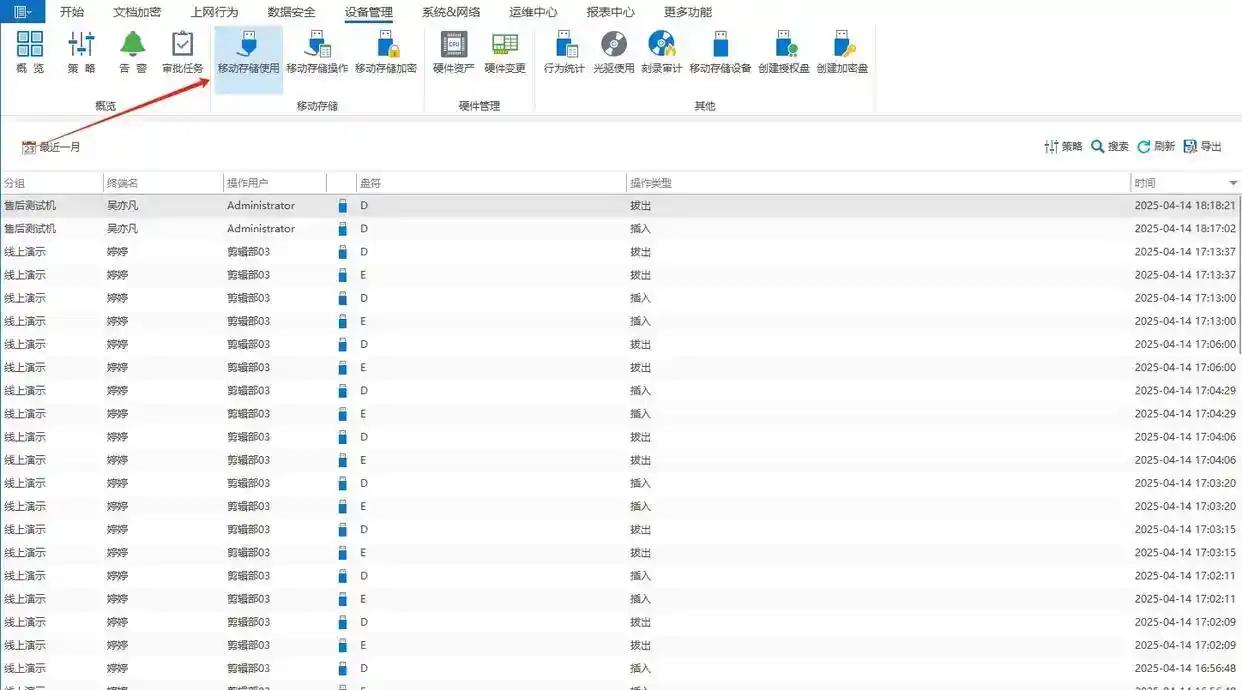 详细日志审计:系统详细记录每一次 U 盘的插入、拔出操作以及拦截情况。管理员可随时查看操作日志,通过筛选、排序功能,快速定位异常操作。一旦发生数据泄露事件,这些日志能成为追溯问题的重要依据,便于企业及时处理。