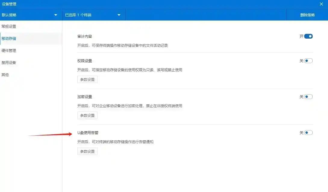 通过细致的策略设置,禁止终端使用USB端口连接除键盘鼠标外的其他设备,如U盘、移动硬盘等。这一功能从源头上减少了数据通过USB存储设备泄露的风险