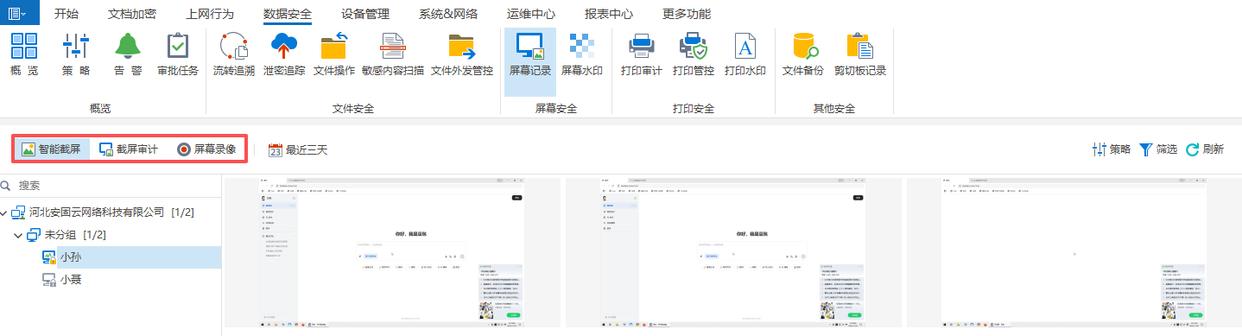 包括实时屏幕、屏幕截图和屏幕录像三种,帮助管理员实时掌握员工工作状态。
