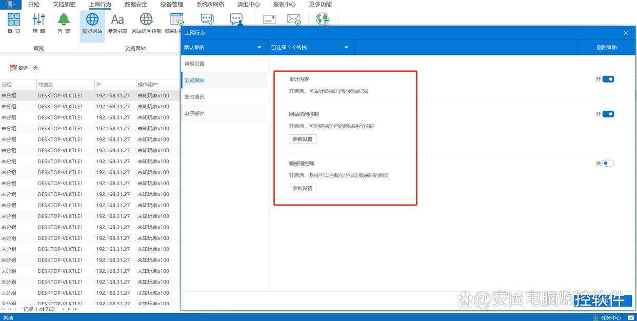 安固软件是一款集成了多种功能的企业级终端安全管理工具,其中包括强大的员工行为监控能力。它能够帮助企业实时监控员工的电脑使用情况,包括上网行为、应用程序使用情况等,为企业提供全面的数据支持以做出更加明智的管理决策。