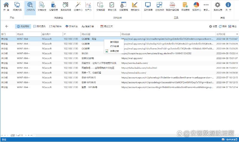 安固软件能够详细记录员工的上网行为,包括访问的网站、浏览的页面、搜索的关键词等。