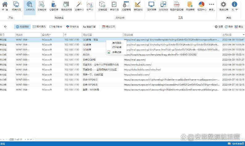 安固软件能够详细记录员工的所有上网行为,包括访问时间、停留时长、具体页面内容以及使用的应用程序等。