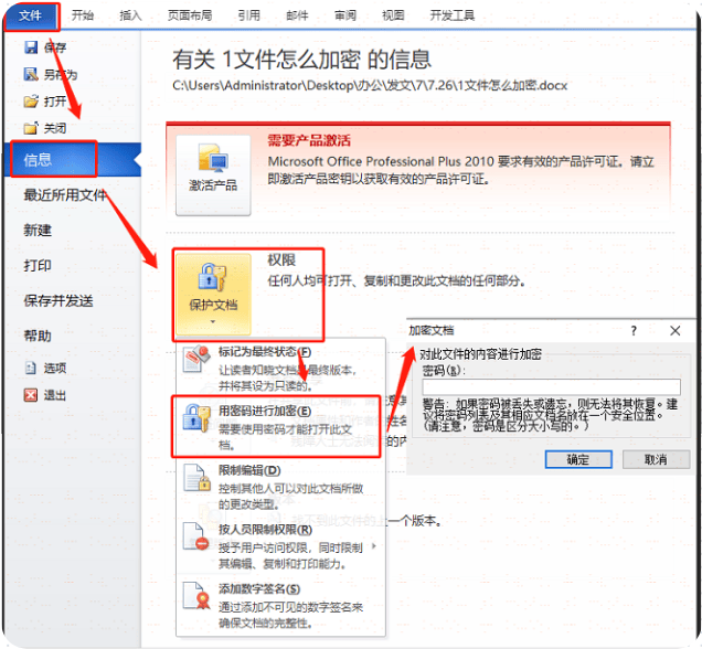 - 打开要加密的Word文档:点击“文件”菜单,选择“信息”选项,在右侧的“信息”面板中,点击“保护文档”下拉按钮。
