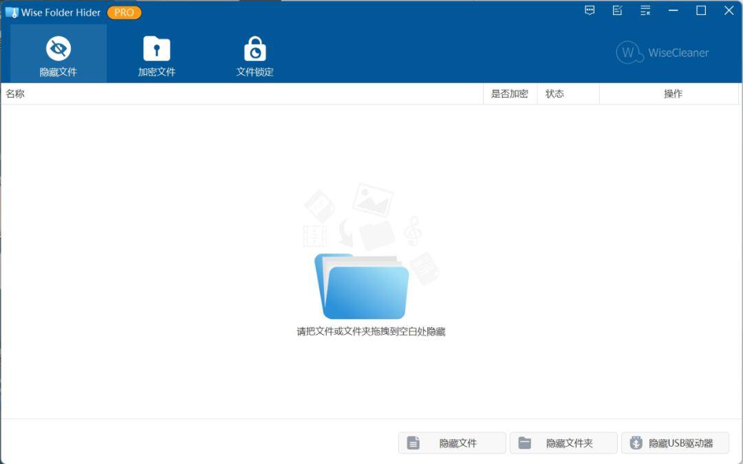 进入软件后,主界面有三大功能:文件隐藏、文件加密、文件锁定。