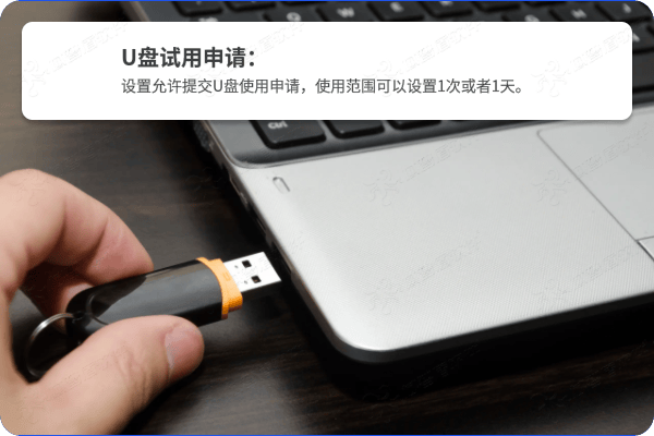 5.U盘使用申请与审批:可以禁用,但不完成禁用。如可以设置U盘使用申请,管理员在收到申请后可以根据实际情况审批并设置相应的USB端口权限。