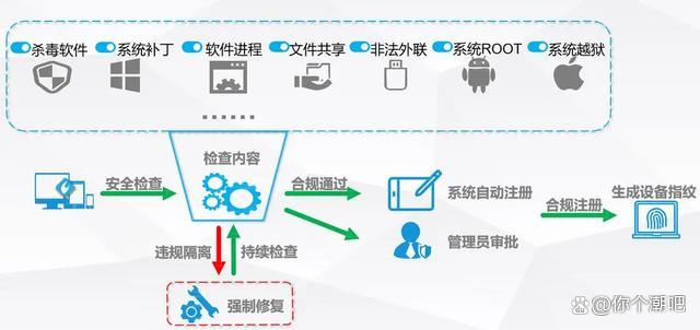 全面的终端合规性检查:包括但不限于操作系统补丁更新情况、防病毒软件安装状态、是否存在可疑进程或文件等,保证接入设备处于良好安全状况。