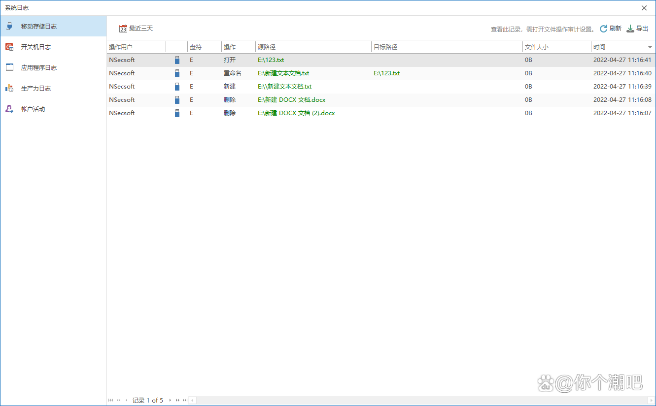 安固软件配备了先进的行为分析引擎,能够实时监测员工的操作模式,自动识别出潜在的风险行为,并立即通知管理员进行调查。例如: