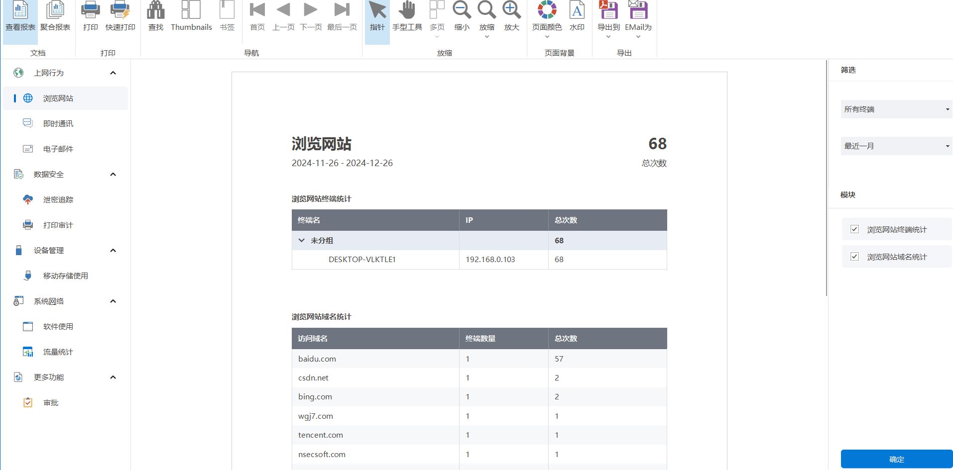 除了直接查看文件操作日志外,安固软件还具备强大的智能行为分析引擎。通过对用户操作模式的学习,它可以自动识别出潜在的风险行为,并立即通知管理员进行调查。例如: