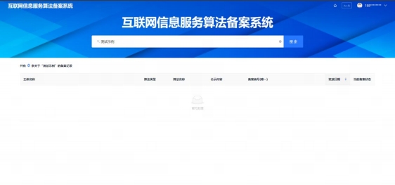 公众和算法备案填报人员均可在备案系统中进行备案查询。公众可在备案系统首页的搜索框内输入主体名称或备案编号进行查询;算法备案填报人员可在“备案信息”页面查询当前备案主体下的所有已提交审核的算法。