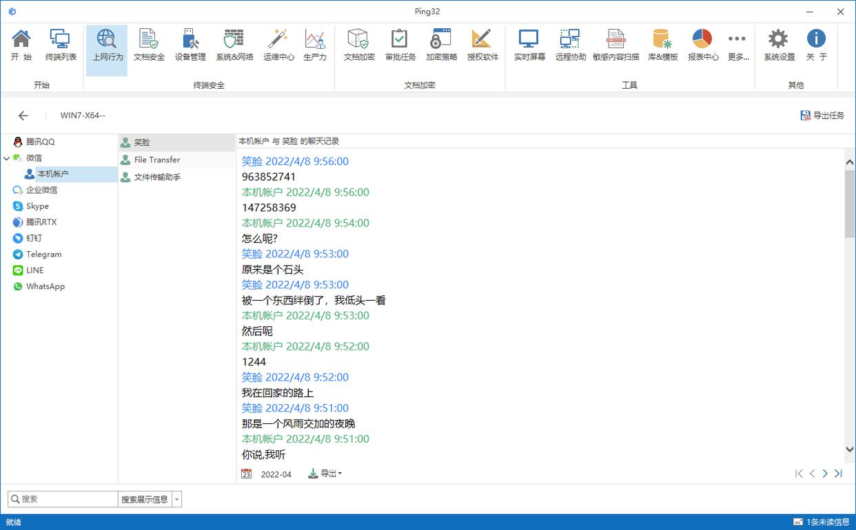 为防止敏感信息通过聊天工具外泄,安固软件还支持对多种即时通讯软件(如QQ、微信、钉钉等)的聊天内容进行监控