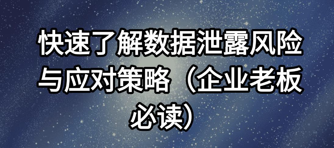 在数字化时代,数据泄露成为企业面临的一个重大挑战。为了帮助企业管理者快速掌握数据泄露的风险及有效的应对措施,