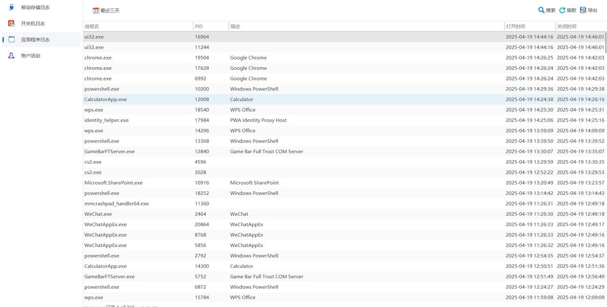 · 应用程序使用追踪:记录并分析员工使用的应用程序,帮助企业了解资源分配情况,并识别潜在的安全威胁。