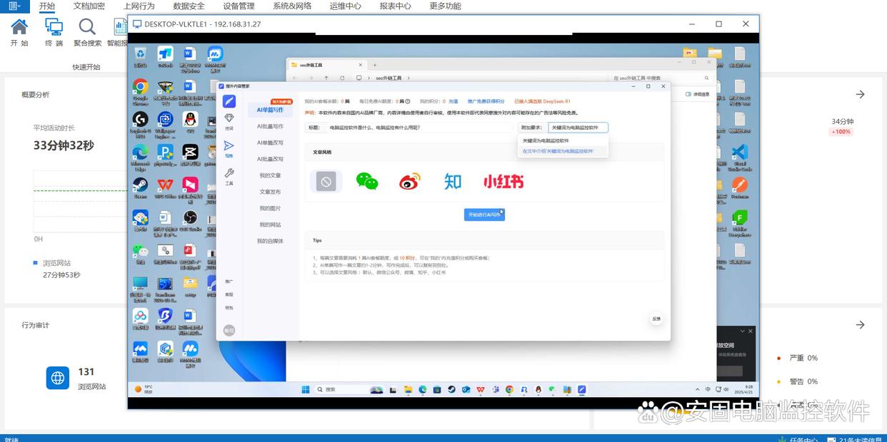 以下是安固软件精心挑选的2025年度七款领先的内网电脑监控软件,它们各自具备独特的功能和优势,能够帮助企业实现更高效的安全管理和工作流程优化。