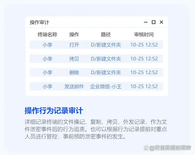文件操作记录:详细记录员工对文件的操作行为,确保重要数据的安全。
