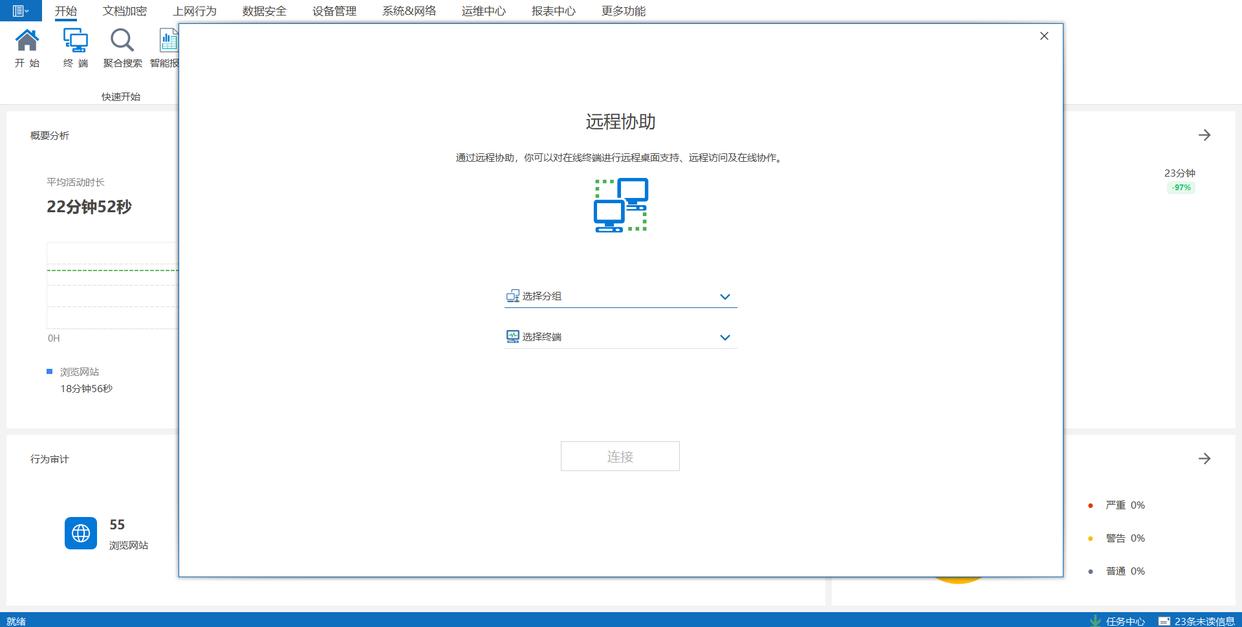 5、远程管理与监控: 软件提供强大的远程管理和监控功能,管理员可以通过控制台远程管理和监控所有终端设备的状态,包括在线状态、安全状态、资源使用情况等。
