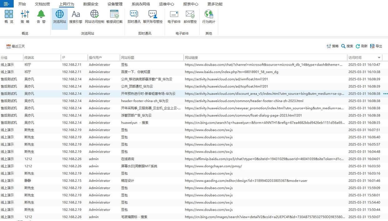 网站浏览监控:员工访问了哪些网站,啥时候访问的,在每个网站停留了多长时间,这些信息系统都能详细记录下来。还可以设置黑白名单,限制或允许员工只能访问那些网站,比如禁止访问购物、娱乐网站啥的。