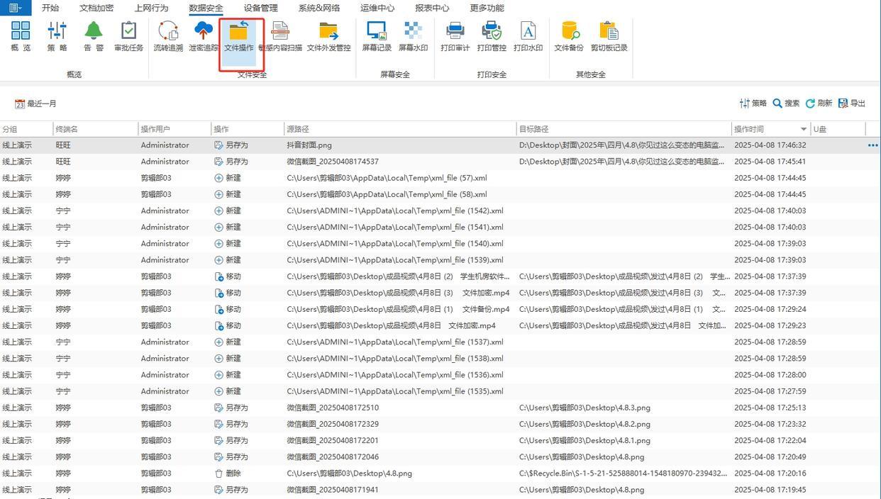 只要有文件被创建、修改、删除,或是被复制、移动到其他位置,软件都会详细记录下来。对企业而言,能有效防止员工因误操作弄丢重要文件,更能预防有人故意篡改、删除机密文件,或是偷偷把公司文件拷贝到外接设备带出公司,守护企业数据安全。在家庭场景中,家长也能避免孩子误删重要资料,还能了解孩子对文件的操作习惯 。