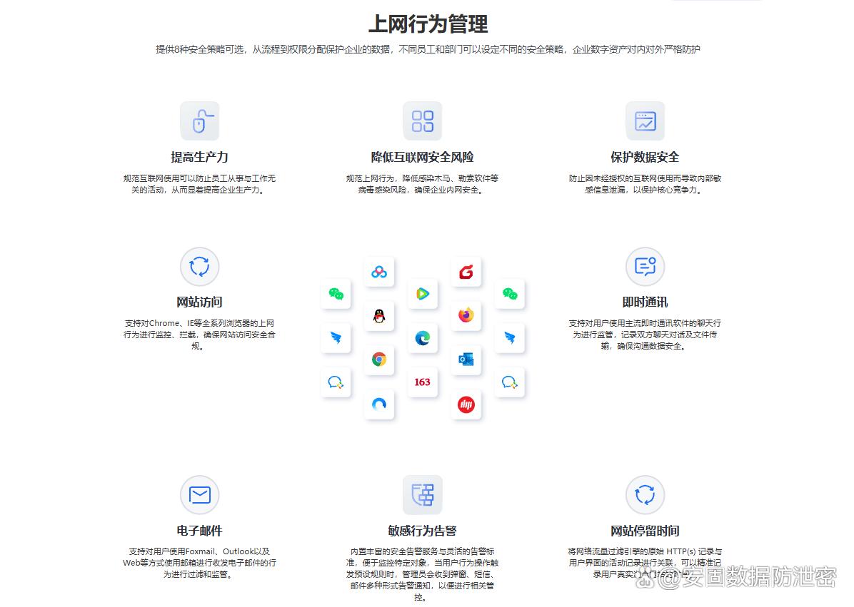 上网行为实时监控:它能对员工的上网行为进行无死角实时监控,不管是员工浏览网页、进行文件传输,还是使用微信、QQ 这类即时通讯软件,又或是收发邮件,系统都能将每一个操作细节精准捕捉。比如,员工要是在工作时间频繁刷新娱乐新闻网页,企业就能迅速知晓并采取措施。