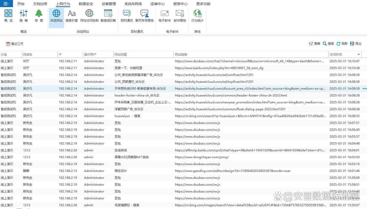 基础行为监控:记录文件操作、网站访问、应用使用等,支持导出Excel报表。