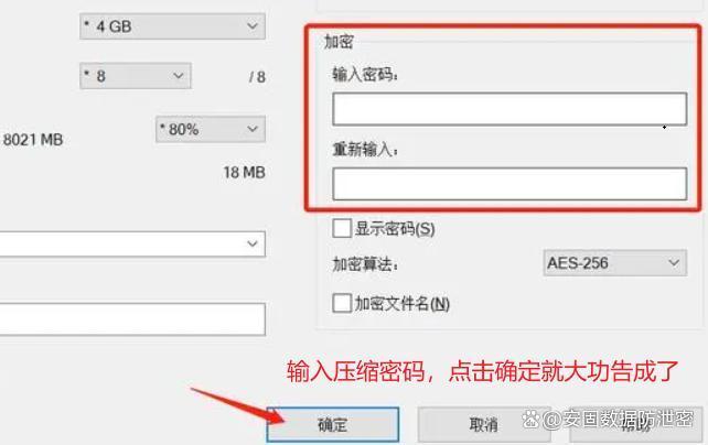 在弹出的对话框中找到“设置密码”选项,输入一个高强度的密码,并勾选“加密文件名”,点击确定即可。