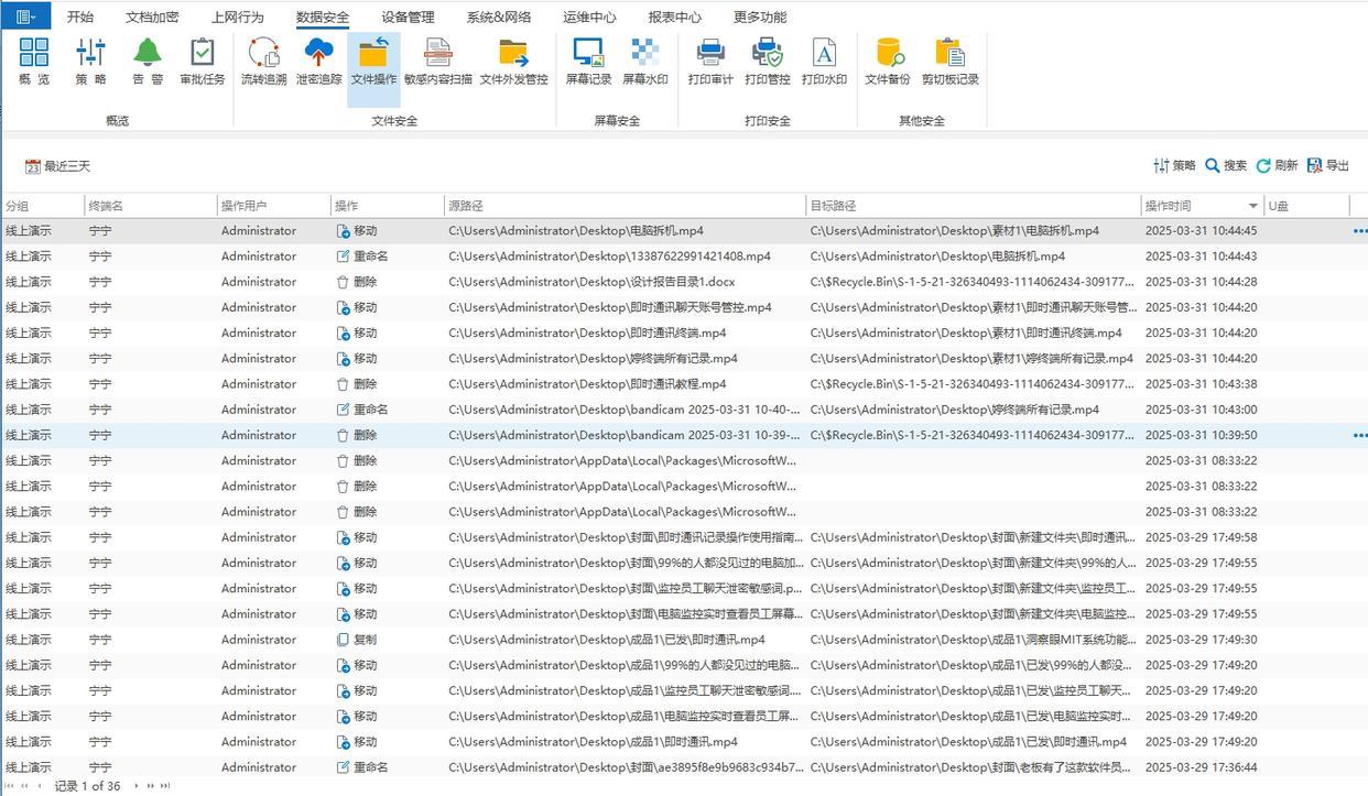 文件操作记录:只要员工对文件进行创建、修改、复制、删除等操作,系统都会把操作时间、操作人等信息详细记录下来。要是公司的重要文件被修改了,通过查看这些记录,就能快速知道是谁做的,方便查明原因和追究责任。