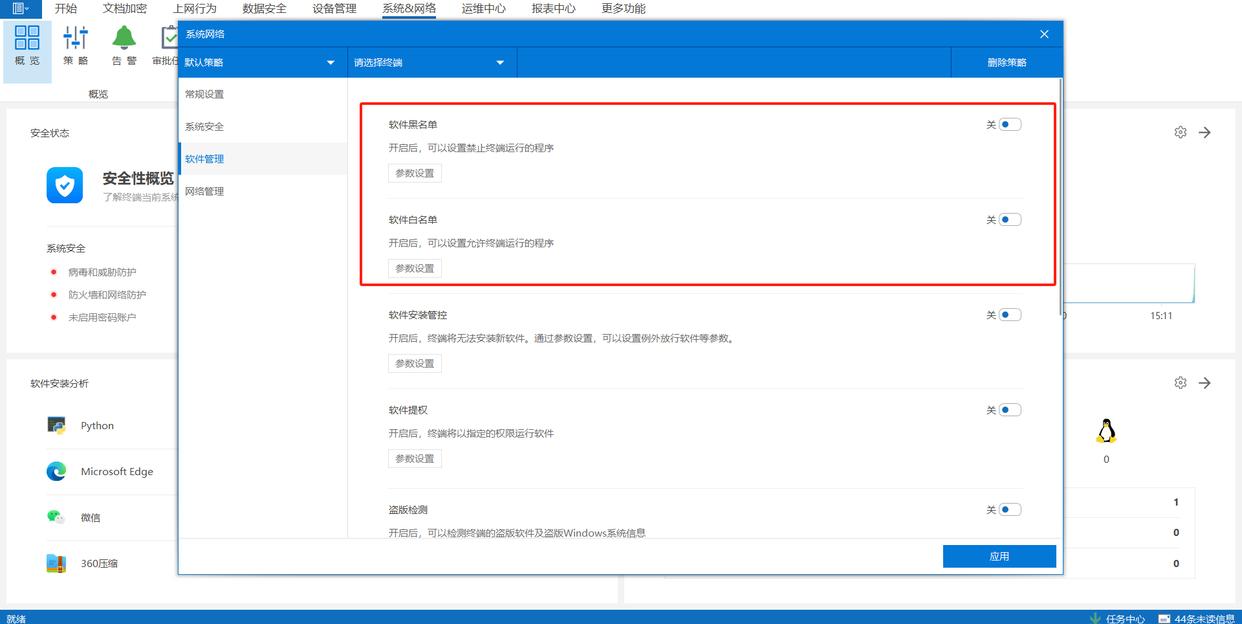 软件可以设定应用程序黑白名单,或者禁止员工安装新软件。