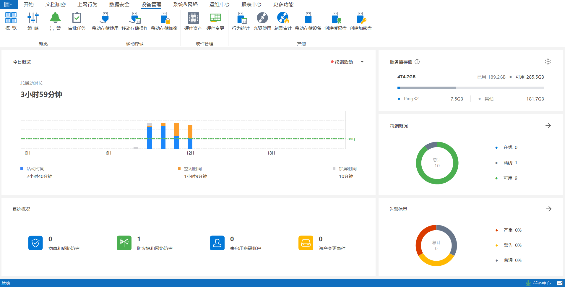 · USB设备控制:限制USB存储设备的插入和使用,防止通过物理媒介复制或带走企业数据。