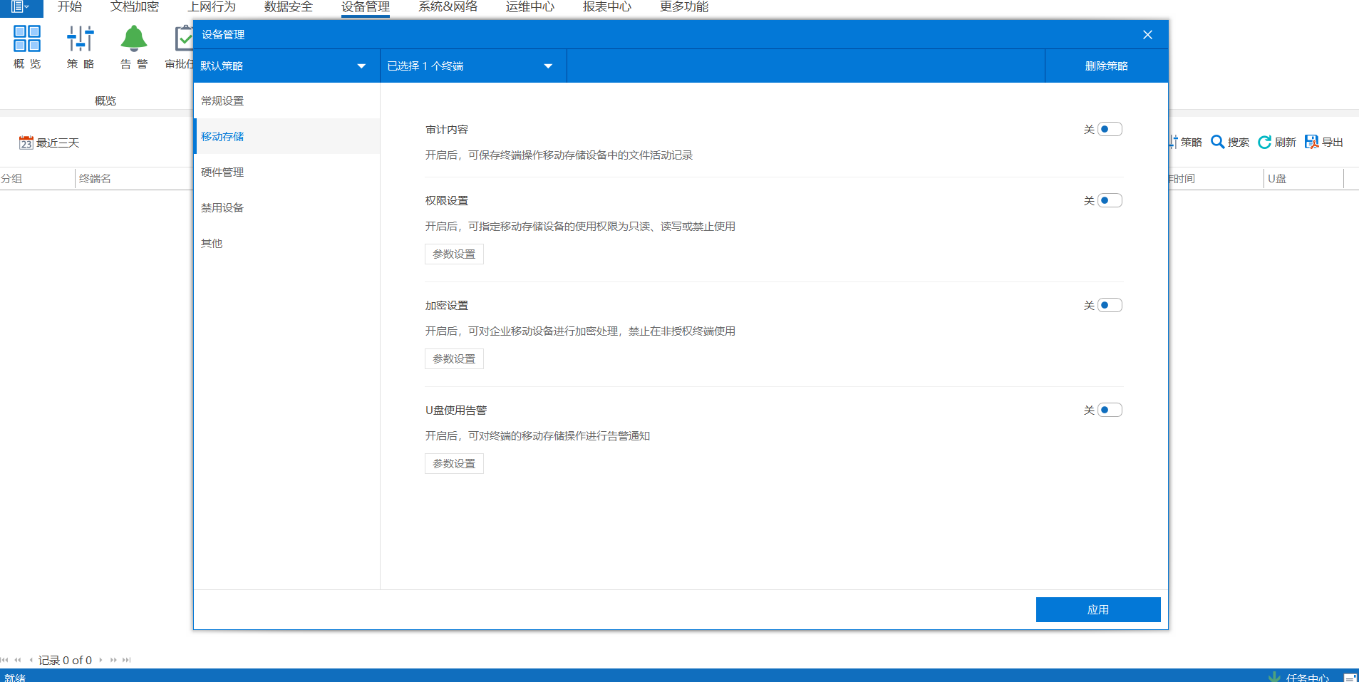 · USB设备控制:限制USB存储设备的插入和使用,防止通过物理媒介复制或带走企业数据。