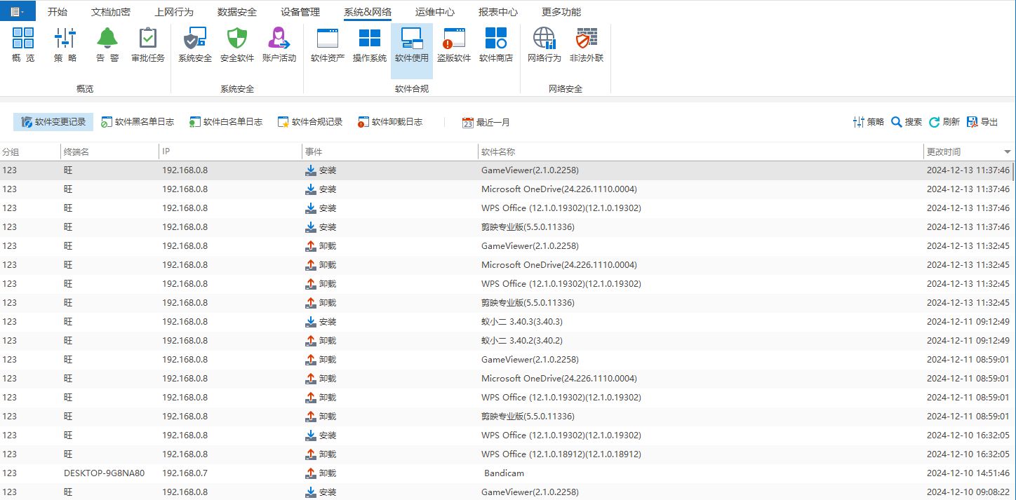 软硬件变动监控:监控软件的安装、卸载及硬件的更换情况,确保电脑安全稳定运行。