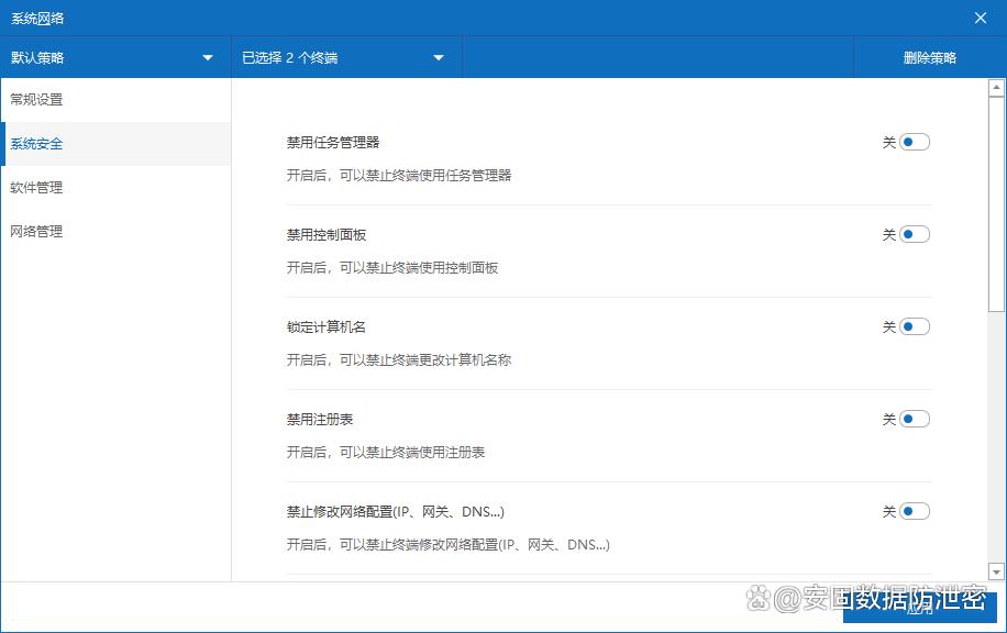 外设管控:禁止使用U盘、移动硬盘等存储设备,或仅允许加密U盘接入,防止数据通过物理介质泄露。