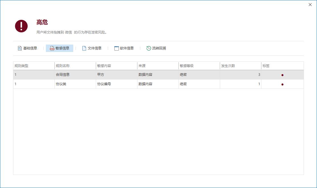 敏感信息报警:预设“客户名单”“财务数据”等关键词,一旦检测到含敏感信息的文件外发(如邮件、聊天工具),立即触发警报,某金融机构用此功能拦截19次违规外发。