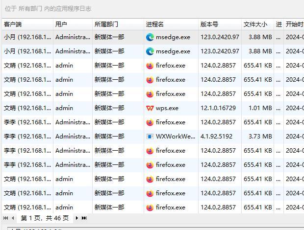 实时查看终端电脑进程名版本号、大小、描述、开始/持续时间、导出、复制、删除。更快速高效的查看有无非工作程序使用情况。