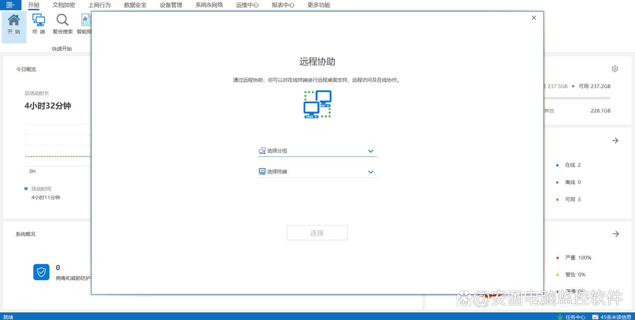 它支持集中管理企业中的多台办公电脑,包括软件部署、补丁更新、远程协助以及实时监控等。