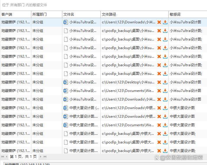 文件操作记录:详细记录文件创建、修改、删除、外发等操作,支持按时间、用户、文件类型筛选。