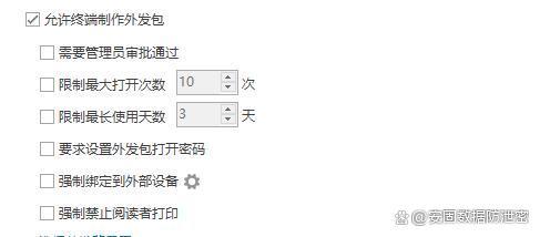 文件外发包:生成加密外发包,可设置打开次数、有效期、水印,甚至要求对方安装临时解密插件。