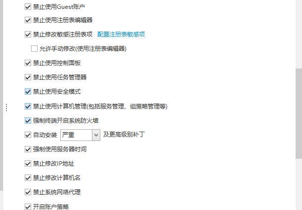 管理员可限制终端用户的操作权限,如禁止修改IP地址、计算机名,禁止使用注册表、控制面板等,防止用户进行不当操作,确保终端设备的安全性和稳定性。