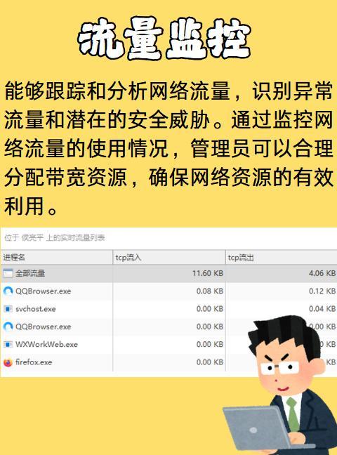 网络流量监控:监控网络流量使用情况,帮助管理者了解员工的网络使用习惯,发现异常流量消耗,优化网络资源配置。