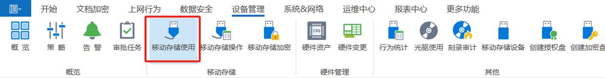 USB设备管控:可设置只读/禁止/密码访问等不同权限,防止通过移动设备泄露数据。