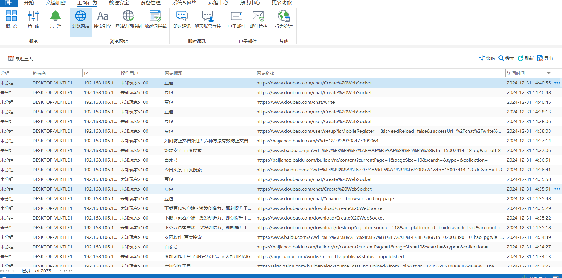· 操作步骤:进入安固软件控制台 > 日志管理 > 网页浏览日志 > 搜索指定条件查看详细记录。