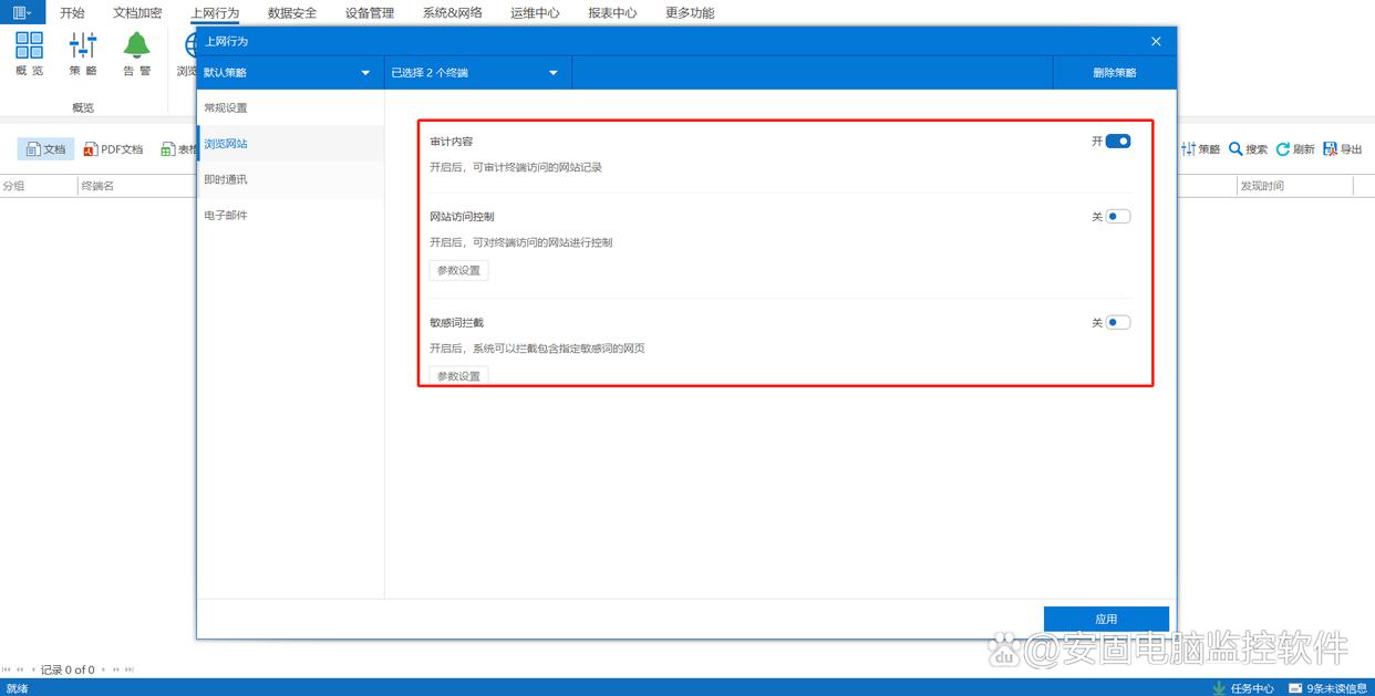 记录员工访问的网站、搜索关键词、聊天内容(如微信、QQ)及文件上传下载行为。支持按时间、用户、关键词等维度筛选,快速定位异常行为。