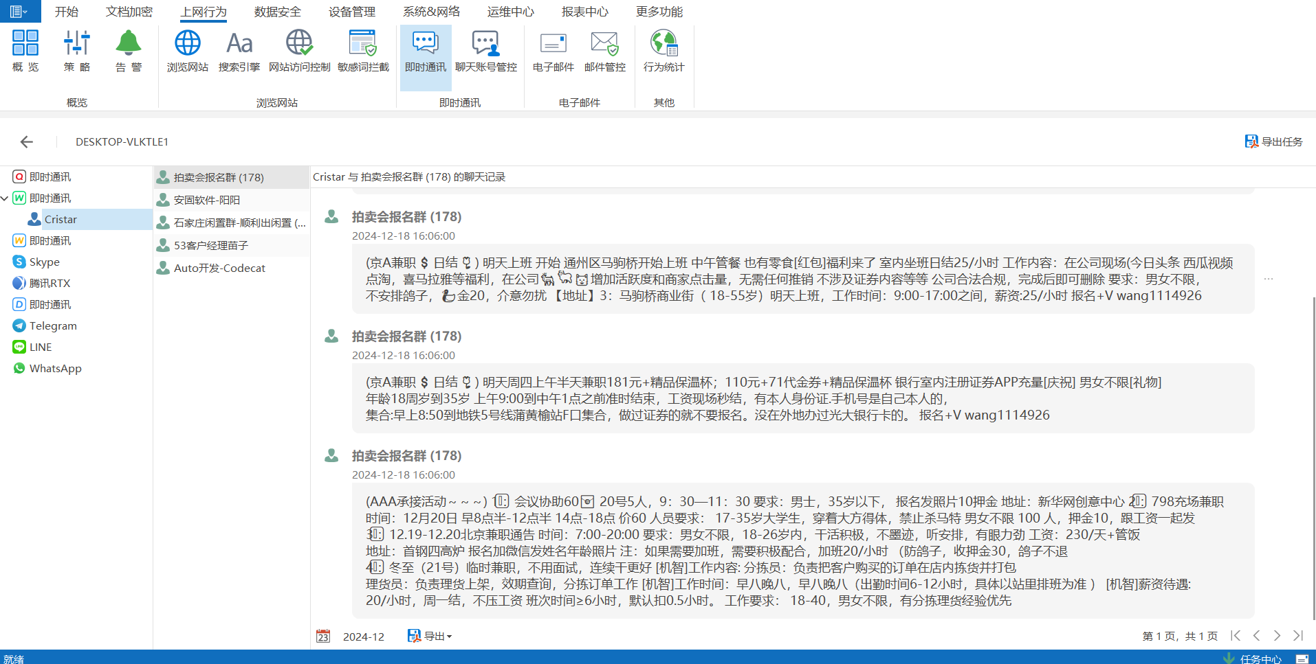 1. 内容捕捉:保存员工在企业内部沟通平台上(如钉钉、微信企业版)的所有对话内容,确保信息可追溯。