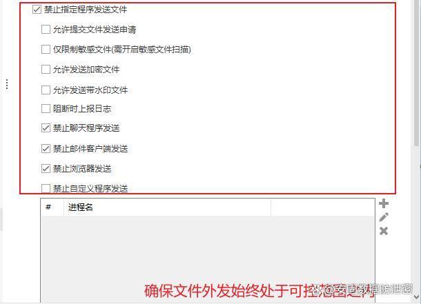 对外发文件的发送渠道进行控制,例如限制通过邮件、聊天工具等方式外发文件。