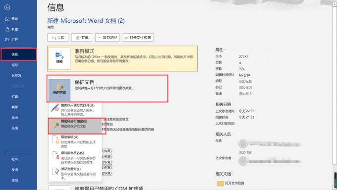Office文档加密:对于Office文档(Word、Excel、PowerPoint等),可以直接使用其内置的加密功能。只需点击“文件”菜单中的“信息”,然后选择“用密码进行加密”