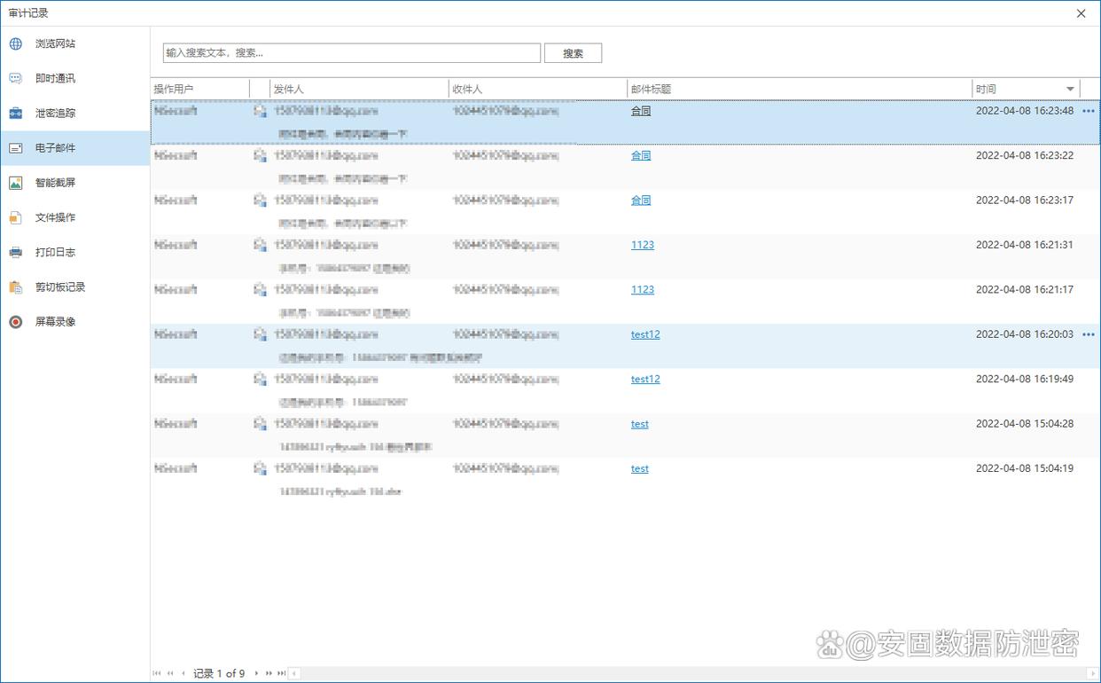 8、邮件监控与管理:可对员工的邮件收发行为进行全面监控,包括邮件收件人、发件人等信息。