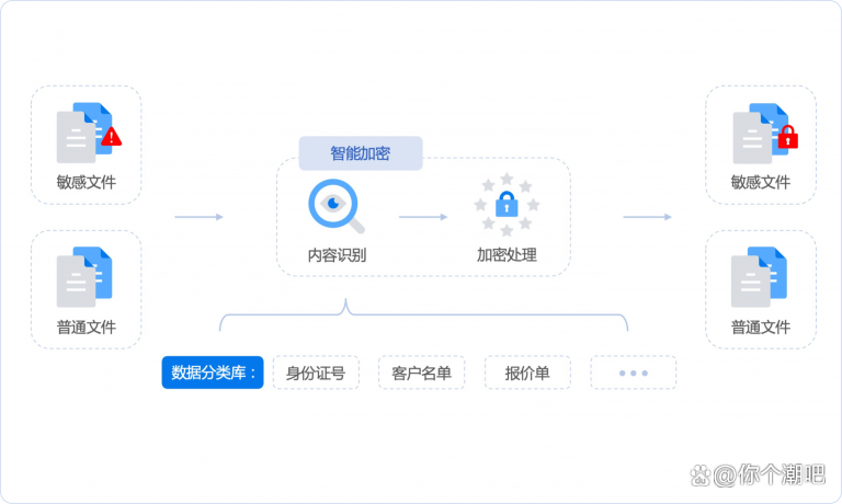 · 透明加密技术:自动对创建、修改或保存的数据文件进行加密处理,确保数据从源头到存储全程受保护。