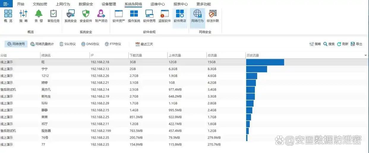 网络流量监控:能监测员工电脑网络流量使用情况,了解哪些应用程序占用大量带宽。通过监控软件可及时发现并限制,保障企业网络稳定运行,确保办公业务不受网络拥堵影响。