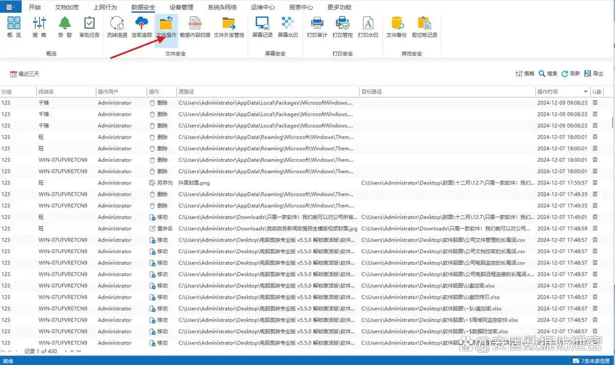 文件操作监控:谁在什么时候,对哪个文件做了创建、打开、修改、复制、删除、移动等动作,都会被详细记录,连账号和设备 IP 也带上。遇到“下午 16:42 从 D 盘拷走一个压缩包”这种情况,回查就有据可依。