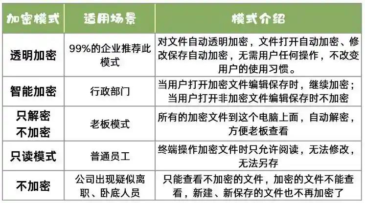 不加密模式则关闭终端电脑阅读加密文件权限,已加密文件无法打开,新建文件也不再加密。